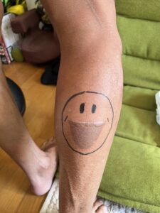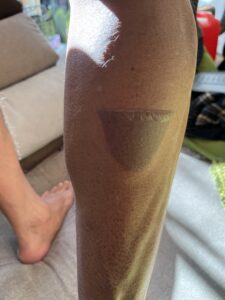 年始に焚き火をしていたらそのストーブにふくらはぎをジュッてくっつけていまして