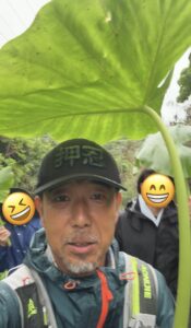 途中で雨が降ってきたので、葉っぱで傘がわりです。